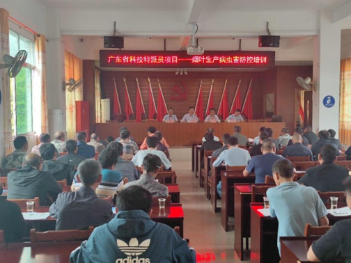 为深入推进实施“百县千镇万村高质量发展工程”,近日,好色TV 作物研究所科技特派员团队赴乐昌市秀水镇开展烟叶生产病虫害防控培训,乐昌市烟草专卖局(分公司)、乐昌市秀水镇政府、秀水镇驻镇工作队、烟农合作社、黄烟种植户共60余人出席本次活动。