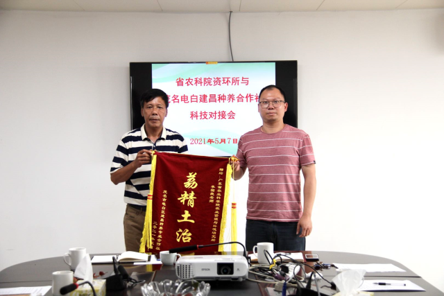 会上,合作社社长梁平再次感谢省农科院资环所为特早熟品种‘香蜜早’提质做出不遗余力的贡献,并赠送锦旗。省农科院资环所与合作社的科技对接可追溯到2016年12月的省农科院与茂名市农业科企对接启动会,启动会后省农科院资环所派出科技人员为合作社解决白糖罂荔枝“裂果”的问题。