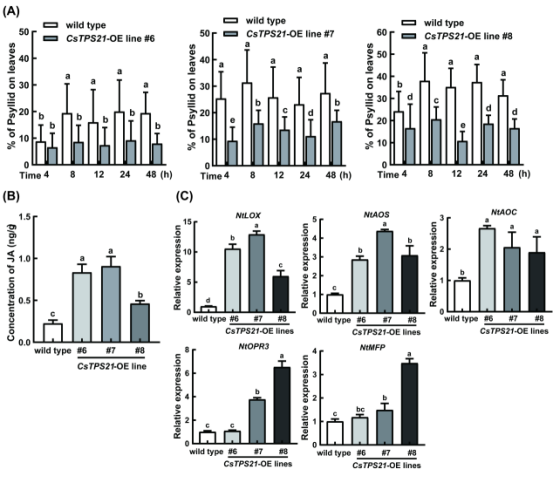 CsTPS21过表达烟草的功能鉴定