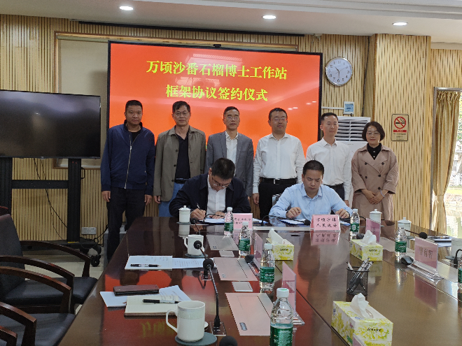 李秋炳、董涛作为双方代表签署了“共建番石榴博士工作站框架协议”。根据协议,番石榴博士工作站将锚定助力万顷沙番石榴产业高质量发展,做足做活“土特产”文章,形成“政策引导+技术创新+品种更新+示范引领+培训指导+品牌建设”的发展体系,推进万顷沙番石榴产业高质量跨越式发展。