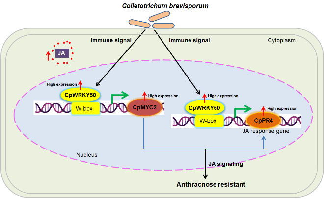 CpWRKY50调控番木瓜炭疽病抗性的工作模型