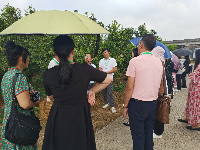 培训会上,果树所黄永敬研究员介绍了近年广东柑橘产业发展现状和趋势,结合实际案例,就种植柑橘无病容器大苗、宽行窄株起垄、水肥一体化、土壤免耕和病虫害机械高效防控等节本高效技术进行讲解。会后,参会人员实地参观了四会砂糖橘省级产业园的千亩柑橘种植基地,现场听取了黄永敬研究员关于砂糖橘、茶枝柑、脆蜜金橘等品种差异特性及秋冬季栽培技术要点的介绍,并进行了现场技术交流和答疑。