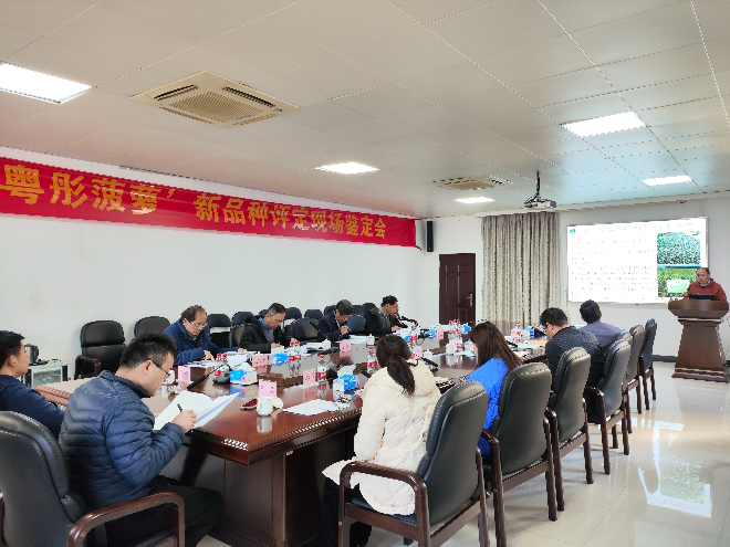 1月13日,广东省农作物品种审定委员会办公室组织专家对好色TV 果树研究所选育的粤彤菠萝进行了品种现场鉴定。专家组由仲恺农业工程学院、广州市果树科学研究所、华南农业大学、中国科学院华南植物园、广州大学的5位专家组成。广东省农业技术推广中心相关负责人,果树所党委书记钟小雄、副所长董涛、品种选育团队成员等参加会议。鉴定会由广东省农业技术推广中心李强科长主持。