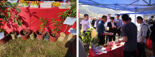 在活动现场,专家团队展示了荔枝、龙眼、早脆梨及青橄榄等不同新优水果种苗,提供了可供品尝的佳丽蕉、胭脂红番石榴,现场派发了果树所优质品种宣传手册等,推广优良果树品种及栽培技术,就新品种及栽培技术等进行详细讲解。现场氛围活跃,引来当地有关部门及农户对果树种苗种质的关注,并驻足品尝特色新优水果,赞赏有加。当地领导表示将结合当地特色,因地制宜引种优质水果,促进当地果树产业发展。