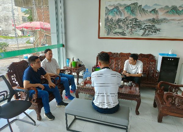 久一农业有限公司经理蓝健介绍了公司的基本情况:目前存栏母猪1000头,商品猪10000头左右,饲料直接购买成品料,因此在饲料成本方面仍有很多节约空间。蓝健经理带张赛博士和曾城科长参观了养殖场,由于近年生猪养殖压力很大,为了更精准的核算成本,养殖场开始使用智能化设备,张赛表示智能化设备的使用为后续精准营养技术利用提供了很好的硬件基础,也为以后双方合作打下良好基础。