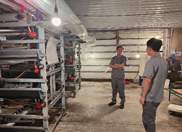 高嘉保和苑场长带张赛博士和曾城科长进一步参观了种鸡场内部设施,并指出公司近几年非常重视降本增效,张赛博士强调养殖降本增效的发力点主要在营养和保温设备等方面。
