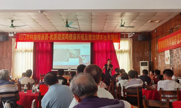 为纵深推进“百县千镇万村高质量发展工程”,近日,动科所科技特派员蔡曼珊高级兽医师、刘天飞研究员联合佛山大学张辉华教授组成专家团队,赴江门开平市金鸡镇开展优质胡须鸡健康养殖及增效降本技术培训活动,以“专家下沉+精准服务”模式,科技赋能地方特色产业。培训活动吸引了当地80余养殖户参与。