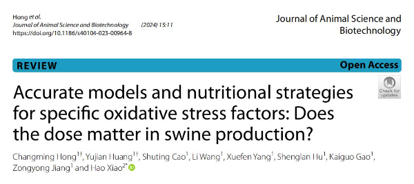 近日,动科所猪营养团队在国际学术期刊Journal of Animal Science and Biotechnology(中科院一区TOP期刊,IF=7)发表题为“Accurate models and nutritional strategies for specific oxidative stress factors: Does the dose matter in swine production?”的综述论文。硕士联培生洪常铭和黄宇健为文章的共同第一作者,肖昊副研究员为论文的通讯作者。