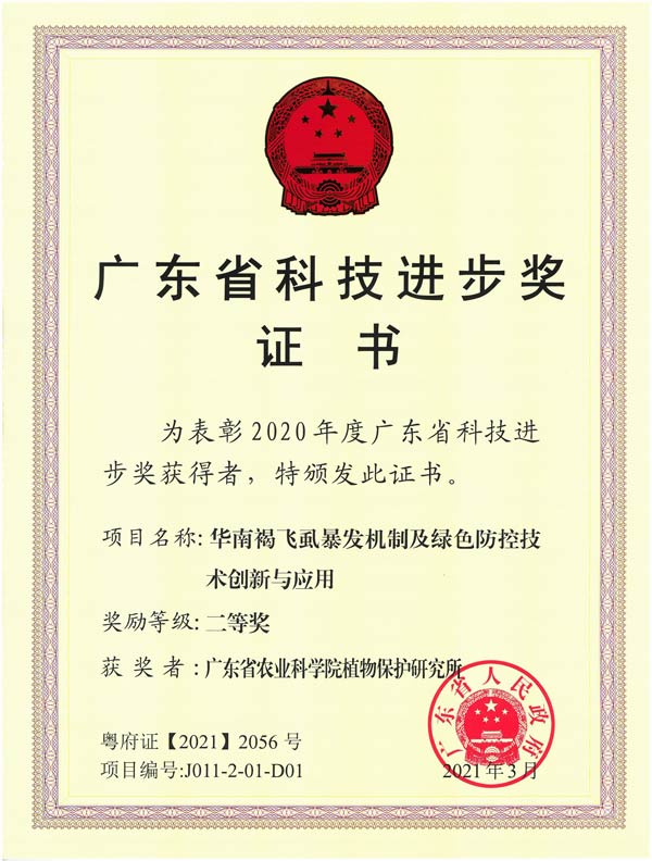 2021年广东省科学技术二等奖--华南褐飞虱暴发机制及绿色防控技术创新与应用