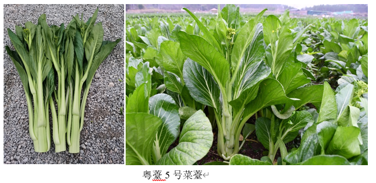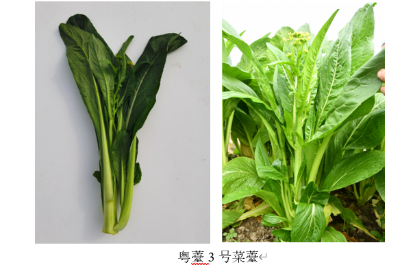 ‘粤薹3号菜薹’是菜薹杂交一代品种,植株生长势强,株型直立紧凑,生长整齐,秋季播种至初收45天,早熟;薹色绿,薹长43.0厘米,薹粗3.1厘米,薹重310.0克;茎圆粗壮均匀,纤维少,品质优,平均亩产量1994.7公斤。‘粤薹5号菜薹’是菜薹杂交一代品种,该品种生长势强,株型直立紧凑,生长整齐;秋季播种至初收62天,薹色绿,薹长44.6厘米,薹粗3.0厘米,薹重327.8克;产量高,亩产量1796.1公斤;田间表现较耐寒、抗逆性强。‘粤薹6号菜薹’是菜薹杂交一代品种,该品种中迟熟,播种至初收60天;生长势强,株型直立主薹圆,薹长40.0厘米,薹粗3.2厘米,薹重321.8克;田间表现黑腐病、软腐病抗性较强。