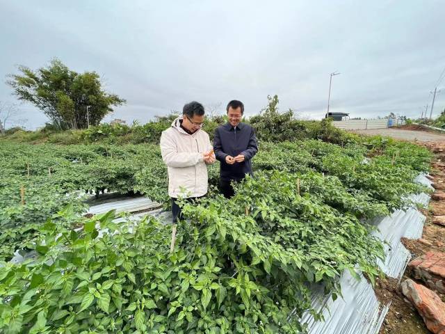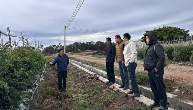 为落实“双百行动”,科技支撑冬种北运菜产业发展,助力“百千万工程”,1月22-23日,蔬菜所所长谢大森等一行5人到茂名高州泗水镇和石鼓镇开展冬种北运菜产业调研及蔬菜生产防寒防冻指导。高州市委副书记郭靖,泗水镇党委书记钟宁,“双百行动”省农科院驻高州服务队副队长、高州市“百千万工程”指挥办副主任宫晓波,高州市农业农村局党组成员梁子胜等参加调研和座谈。