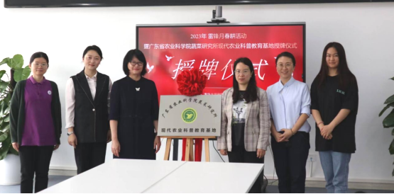 2023年3月23日上午,我所现代农业科普教育基地在清华附中湾区学校揭牌。我所党委书记曾秀媚、清华附中湾区学校校长程惠云、副校长王健,以及我所栽培研究室主任张白鸽、陈潇博士等参加揭牌仪式。