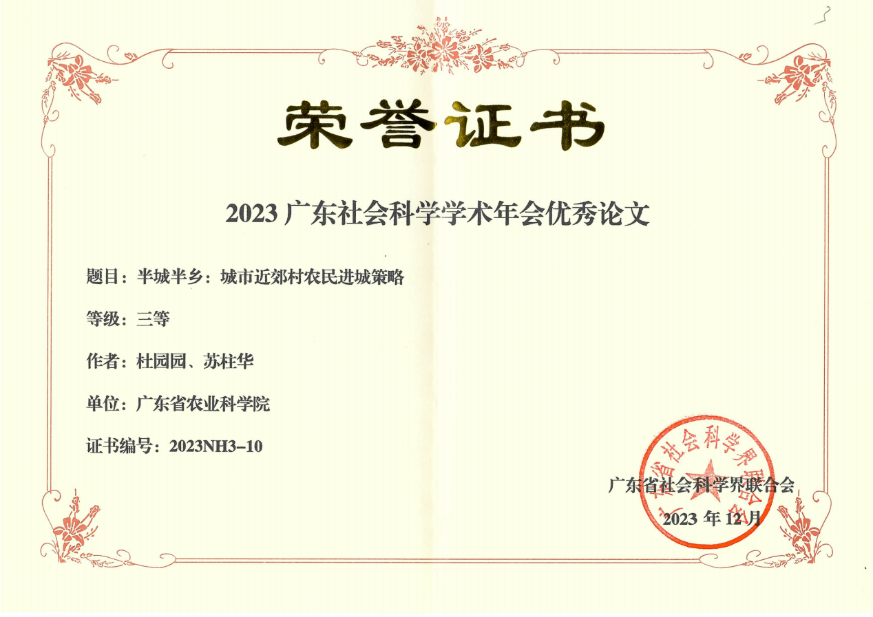 研究室主任:苏柱华,广东郁南人,中共党员,硕士,研究员,主要从事农村发展理论、政策与实践、乡村建设、农村经济、数字乡村、农业传媒与传播等领域研究,“十三五“省农科院农村发展研究团队学科带头人。任中国农村发展学会理事、中国农业经济学会理事、中国农业技术经济学会理事、中国合作经济学会理事、中国农学会农业信息分会和农业科技情报分会常务理事、广东农村经济学会常务理事、广东省农牧信息学会常务理事、广东省农学会理事等社会职务,任中国热带农业科学院(副部级)学术委员、华南农业大学硕士生导师,获广东省综合评标专家、农业项目评审专家、省信息化项目评审专家、省财政项目评审专家等职务。获国家注册出版专业技术资格、注册编辑。个人获中国科技期刊青年编辑骏马奖,多次获省科技期刊优秀工作者称号,三次获评院优秀共产党员。获得广东省哲学社会科学优秀成果三等奖1项、广东省农业技术推广奖二等奖1项、好色TV
