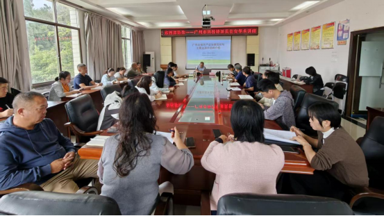 特派员梁世胡和王福军首先抵达安顺市农业科学院,展开了一系列调研和交流活动。安顺市农科院党委副书记、院长牛力立,党委委员、总农艺师任明刚,以及粮作所所长张家洪等院方领导及专家进行了热情接待。在农科院的会议室里,梁世胡研究员作了题为《广东丝苗米产业发展现状与主要丝苗米品种介绍》的学术报告,并与在座的各位专家就安顺市平坝大米品牌的打造策略、品种支撑体系建设、栽培技术的优化与创新等进行了深入探讨。