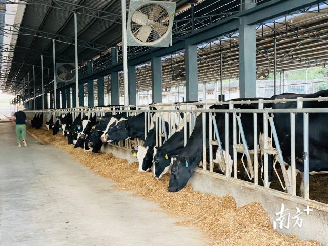 作为汕头市第一批现代农业产业园,澳士兰注重企业提质升级。2020年,牧场将原瓦楞片牛舍改造升级为以色列大埔式饲养模式,奶牛们拥有了一个更加舒适的“家”。每天吃饱后,奶牛群就整整齐齐排好队,挨个等着工作人员冲洗干净身体、消毒,机器挤奶。