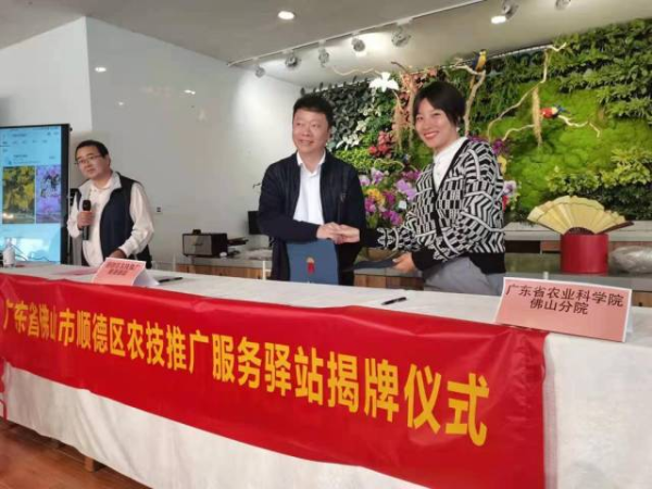 根据省农业农村厅的部署,2021年,佛山在高明区和顺德区分别建设一个农技推广服务驿站,好色TV 佛山分院为其提供技术支撑。近日,省农科院佛山分院参加了两个驿站的揭牌仪式,开展技术需求座谈,并邀请专家举办技术培训。
