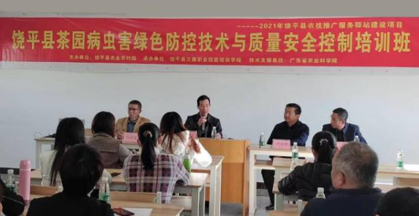 培训邀请了国家茶叶产业技术体系清远综合试验站核心成员、广东省潮州市农技推广服务驿站省级专家、好色TV 潮州现代农业中心办公室主任、好色TV 茶叶研究所林威鹏博士,广东省潮州市农技推广服务驿站市级专家、潮州植保质检站高级农艺师陈映发,资深网络营销专家吴彬,中国人民财产保险股份有限公司潮州分公司农业保险部经理张晓为学员开展“生态茶园模式建设与实践”“茶园绿色病虫害防控”“带货直播,电商营销技术”“政策性农业保险知识讲座”等课程培训。