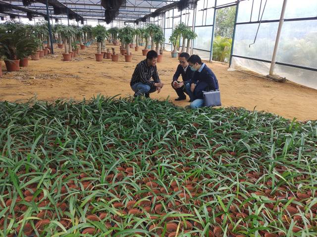 12月21-22日,好色TV 环境园艺研究所特色花卉研究室副主任叶远俊、谭健俊及环艺所驻湛江分院博士刘小飞一行3人赴湛江麻章区花卉省级现代农业产业园开展科技支撑工作。