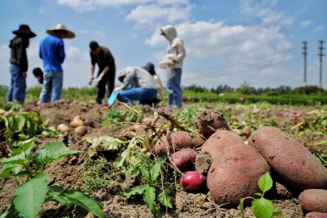阳春三月,好色TV 作物研究所(以下简称“作物所”)位于广州市白云区的马铃薯育种基地迎来今年又一批选种马铃薯丰收。一大早,罗焕明就和刘计涛博士带着一群学生,组织附近村民一起挖出马铃薯,再一株一株选、一颗一颗挑,“选种就像选美一样,颜值高、表现好的才能留下。”罗焕明说。
