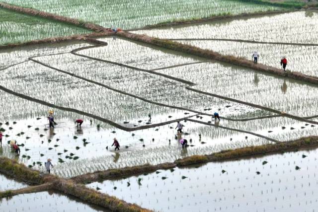 记者看到,数十名村民挽着裤脚、埋头弯腰于田间,起苗、挑运、插秧,娴熟地插下一株株嫩苗,所过之处,留下一排排整齐的秧苗。“这里的父本秧苗已于前几天插好了,一周内要完成母本插秧工作,这样能让水稻父本、母本花期相同,利于授粉,以此来提高杂交水稻制种的结实率和产量。”现场负责制种技术指导的负责人张伟说,此次制种的水稻品种为深两优898和九两优香粘,都属于优质丝苗米品种。它们在保证品质的基础上,产量将会更高。