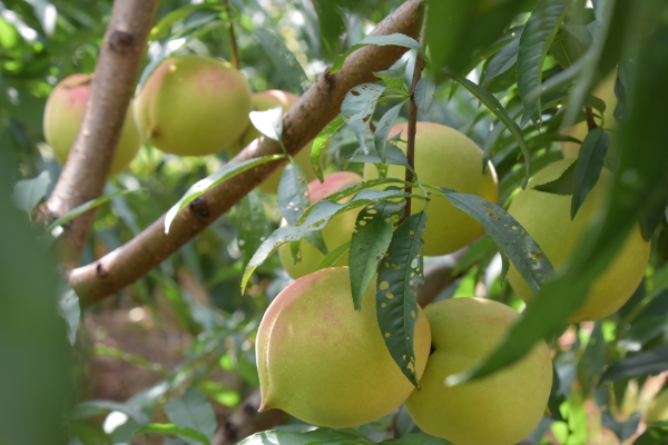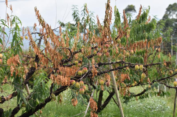 以连平为例,经过30多年的发展,大部分果农在生产管理上已有很大的进步,也有相对较固定的种植流程。但是,近年来在生产上也遇到一些亟待解决的产业发展瓶颈问题,如大部分果农形成了以短果枝为主的重剪修剪方式,这种修剪方式往往对树体的机械损伤过大在极端倒春寒及高温高湿天气时常出现大量流胶从而加速树体衰老。同时,部分果园在疏果上仍存在不疏果或疏果量少,导致挂果量过多树体养分消耗过大,在持续强降雨加短时间高温暴晒情况下常出现烂根、烂果、枝条枯死甚至整株枯死现象,上述情况在一些老旧果园表现的愈加明显和频繁。另外,部分桃园对主要病虫的症状识别及发生规律不清楚,临近成熟期经常出现大量烂果、落果、海绵果现象,一些果农总以为出现问题后寄托于使用化学农药来控制,其实这种情况已错过防控最佳时期,即使用药其效果也是有限。
