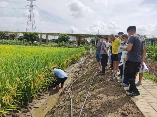 近日,广州市南沙区东涌镇农业农村技术服务中心在东涌镇马克村乐园生态基地举办水稻新品种及新型种养模式试点推广现场会,组织各村生产干部、种养户观摩水稻新品种19香丝苗、粤农丝苗和“水稻+禾虫”新型种养模式试点情况。