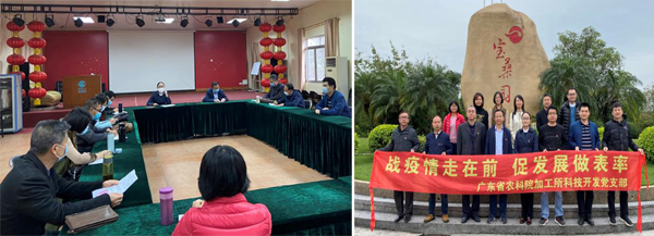 3月27日,果蔬加工和财务党支部书记余元善研究员带领支委温靖、邹波及党员安可婧等4人组成的科技服务团,前往河源蔬菜产业园实施主体企业—东源县阳光绿源生态农场以及河源市绿州食品有限公司、广东雄达公司和春沐源智慧农业示范区开展生产调研。在河源市绿州食品有限公司参观了魔芋加工车间,详细了解了魔芋加工生产中存在的主要问题,并给予加工技术指导。现场考察了广东雄达公司和春沐源智慧农业示范区的灵芝和樱桃番茄种植园,就疫情当下的复工复产及推进产业园蔬菜生产进行交流指导。对东源县阳光绿源生态农场的桑果、蔬菜等加工技术问题,给予改进建议,有效解决了该企业果蔬原料无法高效利用的困惑。结合国家对复工复产要求,果蔬加工和财务党支部近期还召开支部大会,以“科技助力春耕,把论文写在基层上”为主题进行了讨论,要求党员同志要积极发挥先锋模范作用,利用自身掌握的果蔬加工专业知识,多下基层服务企业,线上线下多渠道指导企业解决技术难题,把论文写在基层上。