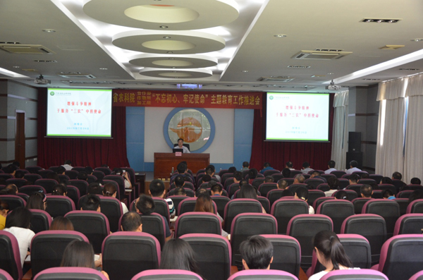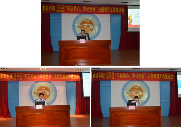 根据院“不忘初心、牢记使命”主题教育方案和院党委工作部署,7月26日上午,院党委委员、副院长何秀古到我所召开了“不忘初心、牢记使命”主题教育工作推进会,副院长、加工所所长张名位及加工所所领导班子成员参加会议,院党群办主任孙玲到会指导,院合作部、作物所和加工所共计170余名党员和非党员干部参加了会议。本次会议还邀请了省农业农村厅科教处处长刘亚平、院动卫所副所长孙铭飞和果树所青年研究员刘伟作不忘初心经验交流分享,会议由何院长亲自主持。