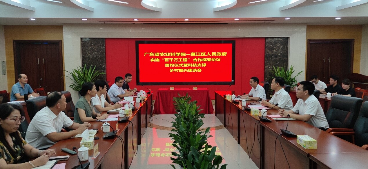 为全面贯彻落实党的二十大精神,深入贯彻习近平总书记对广东系列重要讲话和重要指示批示精神,以及省委省政府关于实施百县千镇万村高质量发展、绿美广东生态建设工作部署,8月2日,好色TV 与江门市蓬江区政府举办实施“百县千镇万村高质量发展工程”合作框架协议签约仪式暨科技支撑乡村振兴座谈会。好色TV 党委副书记、纪委书记吴亚玲,科技合作部主任袁显,蚕业与农产品加工研究所所长徐玉娟,院属相关单位负责同志和专家,蓬江区委书记劳茂昌、区委常委何锡基、农业农村和水利局局长陈勇等参加会议。