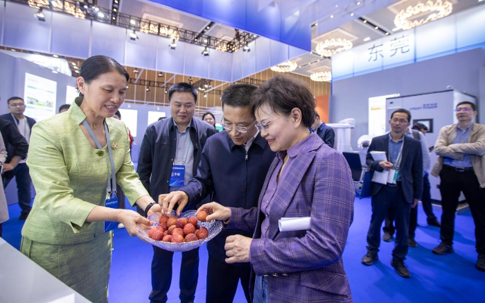 新春伊始,2月18日,广东省委、省政府在创新活力之城深圳隆重召开全省高质量发展大会。此次会议的亮点之一是省主会场同步举办的产业科技融合发展成果展。好色TV 党委书记邓诣群带领我所徐玉娟所长以及果蔬加工创新团队余元善研究员及程丽娜副研究员,参展并展示了创新成果——超低温冻眠锁鲜荔枝技术。