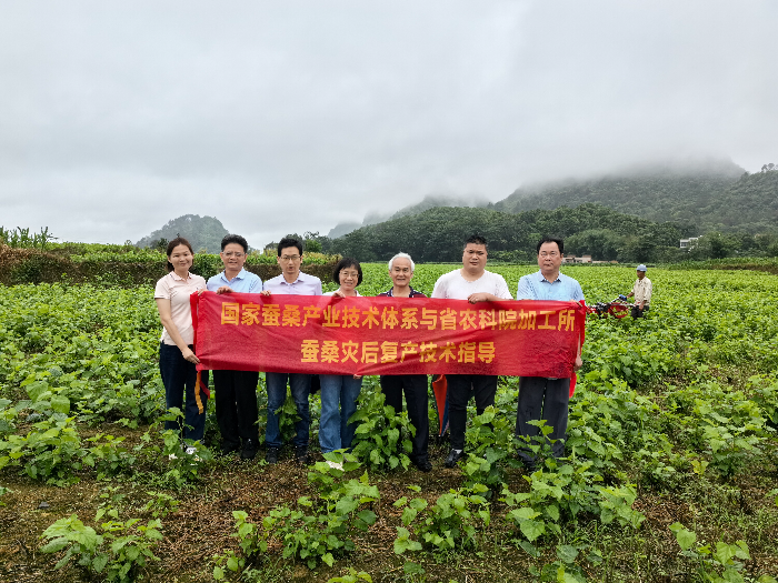 6月3日至6日,在广东省农科院清远分院叶秀峰主任的陪同下,国家蚕桑产业技术体系前任首席科学家鲁成教授与体系首席科学家秘书、西南大学陈鹏副教授、国家蚕桑产业技术体系岗位科学家、好色TV 蚕业与农产品加工研究所副所长邹宇晓研究员、国家蚕桑产业技术体系广州综合试验站站长罗国庆研究员、桑树育种研究室主任王振江研究员、肖阳研究员和林森博士组成专家团,先后到广东省清远市、梅州市和揭阳市开展蚕桑种养与资源多元化利用技术指导。