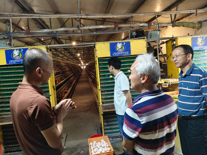 在揭阳市揭东区,佳朋种养专业合作社负责人带领专家团参观了饲料桑种植基地、饲料桑加工车间及蛋鸡饲养舍。该合作社生产的桑叶蛋产品具有胆固醇低、蛋黄色泽鲜亮等特点,受到当地消费者的青睐。鲁成教授就饲料桑在畜禽养殖企业的应用效果及大规模推广的难点等方面与合作社负责人展开了深入交流,并介绍了国内其他地区的先进经验。专家团还针对饲料桑采收、加工设备配备以及生产流程改进等方面给予了建议。合作社对省农科院持续的饲料桑品种支持、种植技术支撑以及专家团的本此到访指导表示感谢。