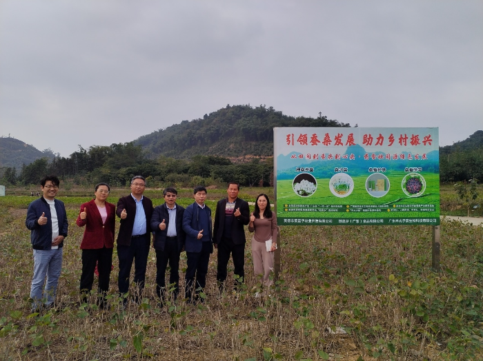 专家组一行首先前往清远英德市,先后实地考察了英德市鲜蕊芽生态农业发展有限公司、英德市德沁生态农业科技有限公司、英德市菜篮子农业开发有限公司等生产企业,并与企业负责人进行了座谈交流,专家组就企业桑叶菜生产专用、“蚕菜”兼用等生产桑园提出了加强桑园冬期病虫害管理、及时做好冬期清园封园、松土增施基肥等专业指导意见。随后专家组一行深入佛山市顺德区桑基鱼塘示范基地,实地调研当地桑基鱼塘生态循环高效开发利用模式。在随后的对接会上,邹宇晓介绍了加工所近年来在蚕桑科技创新、成果转化、产业服务等方面取得的成果,并分析了广东蚕桑产业未来发展趋势与生产中存在的制约问题。参会人员围绕蚕桑合作育种、多元化利用技术研发、高值化产品开发等议题进行了深入交流和探讨,并就各自的观点进行了充分沟通。通过此次对接交流,进一步加深了双方岗站团队间的相互了解,深化了合作关系,将有力促进我省蚕桑产业的高质高效发展。