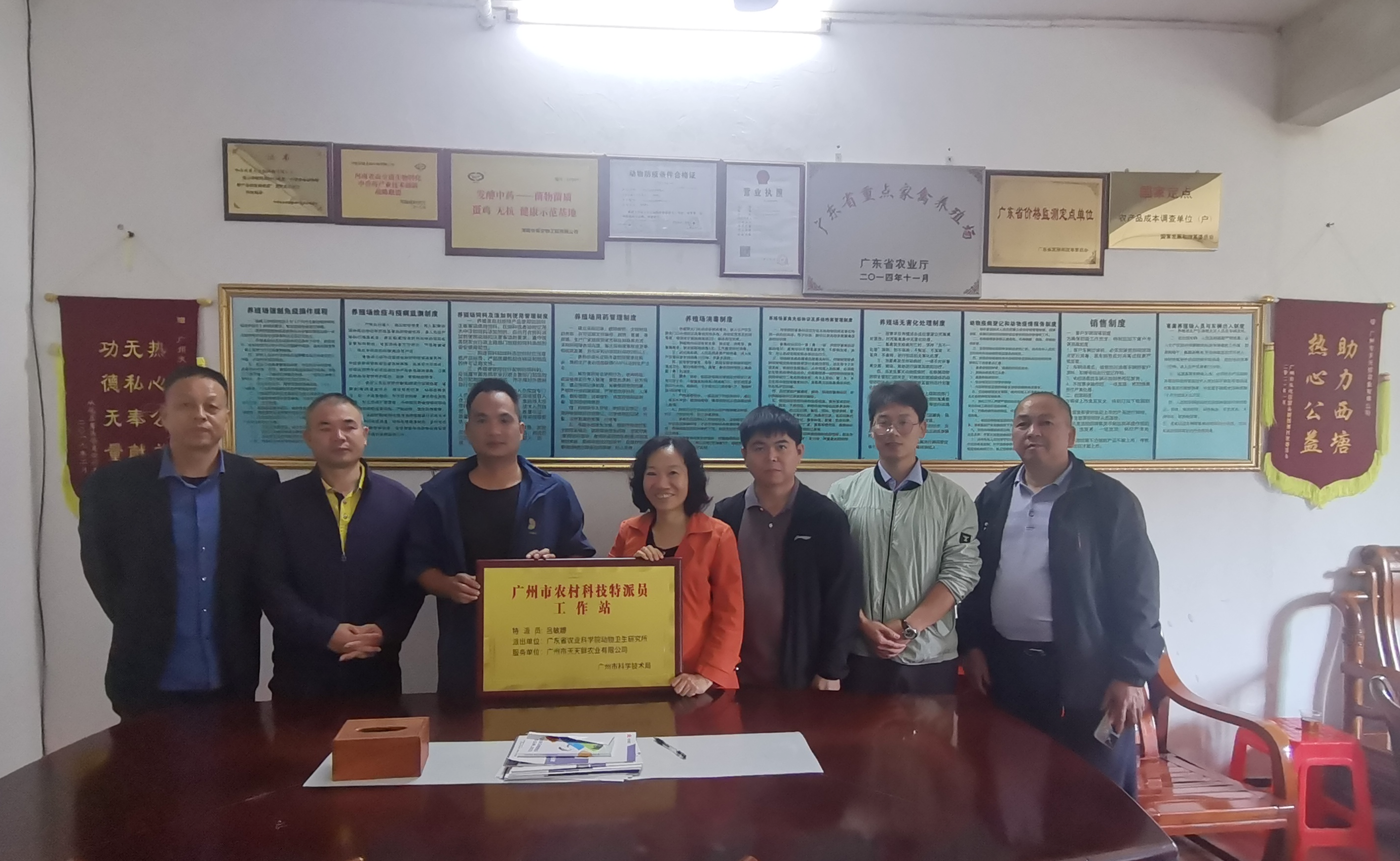 2023年12月12日,动卫所农业科技特派员吕敏娜副研究员、林栩慧副研究员,广州市从化区动物卫生监督所李斌高级兽医师一同前往服务企业—广州市天天鲜农业有限公司进行座谈交流,并举行“广州市农村科技特派员工作站”挂牌仪式。