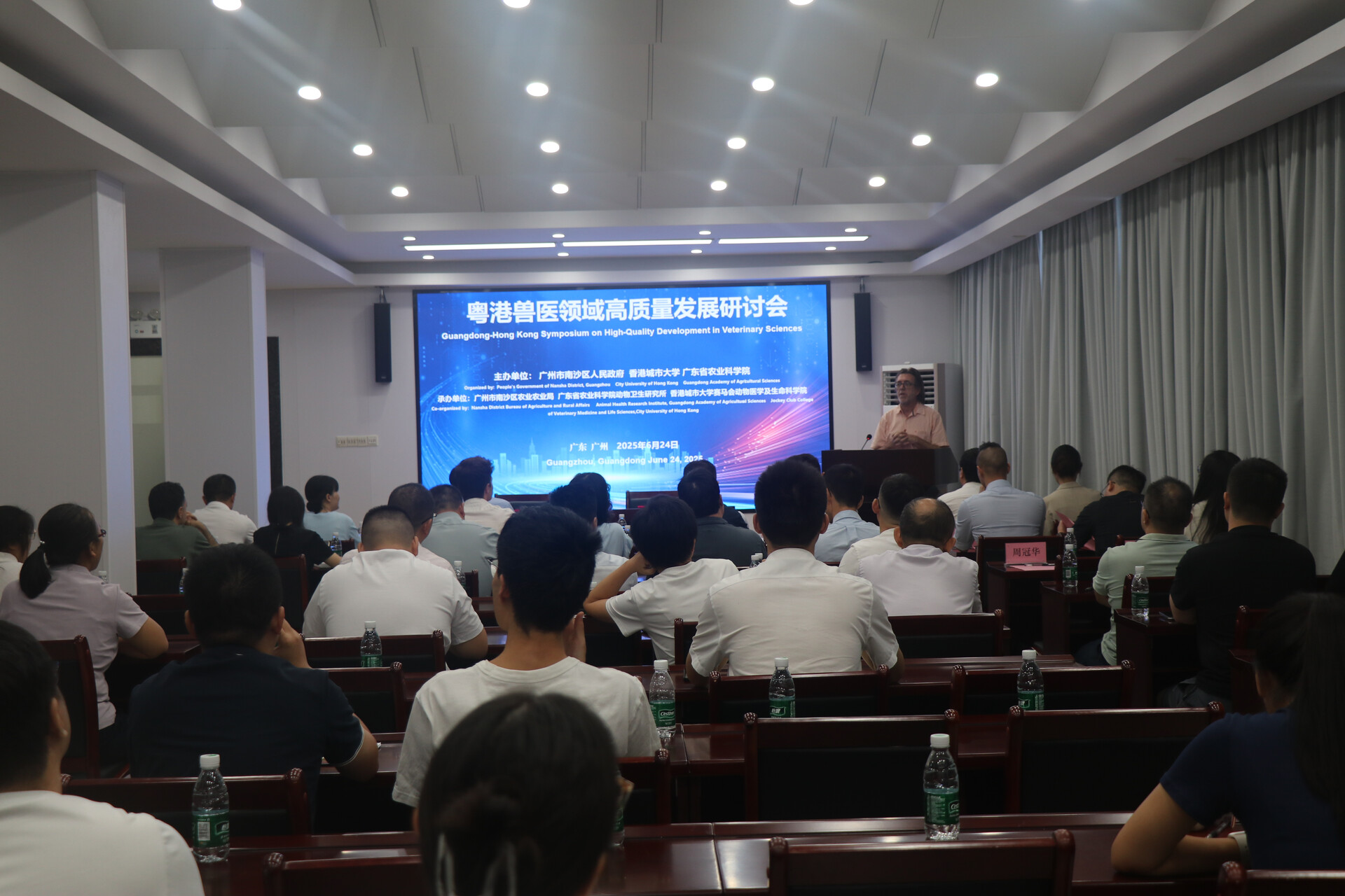 6月24日,由省农科院动卫所联合南沙区农业农村局、香港城市大学赛马会动物医学与生命科学院举办的“粤港兽医领域高质量发展研讨会”成功在动卫所召开。省农科院副院长易干军研究员、南沙区农业农村局梁云尘总畜牧兽医师、动物防疫监督所所长周冠华、香港城市大学赛马会动物医学与生命科学院副院长Patrick Butaye教授、动卫所党总支书记黄丽芸等出席会议。会议由动卫所副所长王刚、张建峰主持,来自两地三方的领导专家、科技人员与研究生等共60余人参加会议。