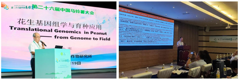 会上,陈小平受邀做题为“花生基因组学与育种应用(Translational Genomics in Peanut——from Genome to Field)”的大会主题报告,介绍了好色TV 花生团队在花生全基因辅助选择育种技术的研究进展,实现了育种理论和技术的突破,促进花生遗传改良和产业发展。李小波研究员在会议产业发展专题做“冬种马铃薯产业现状、挑战与机遇”报告,介绍了我国冬种马铃薯产业存在的短板及产业发展的挑战和机遇,展望华南冬作马铃薯产业发展方向。