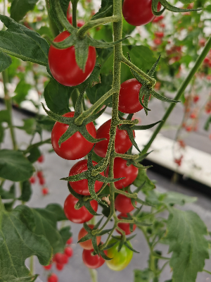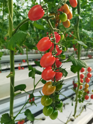 粤科达202:无限生长型,长势强,多岐花序为主,未成熟果有绿肩,成熟果实鲜红有光泽,果型椭圆形,可溶性固形物含量10.0%以上,口感好,脆甜,裂果少,耐储运,单果重约16g,可串收。适宜设施和露地栽培。