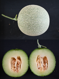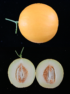 橙蜜1号:全生育期85-90天,植株耐高温,中抗白粉病,果实发育期45-50天,单果重1.5-2.0千克,果皮青绿色,覆盖立体细密网纹,果肉橙色,口感软糯香甜,春夏季高温环境下中心糖度可达16.0%。