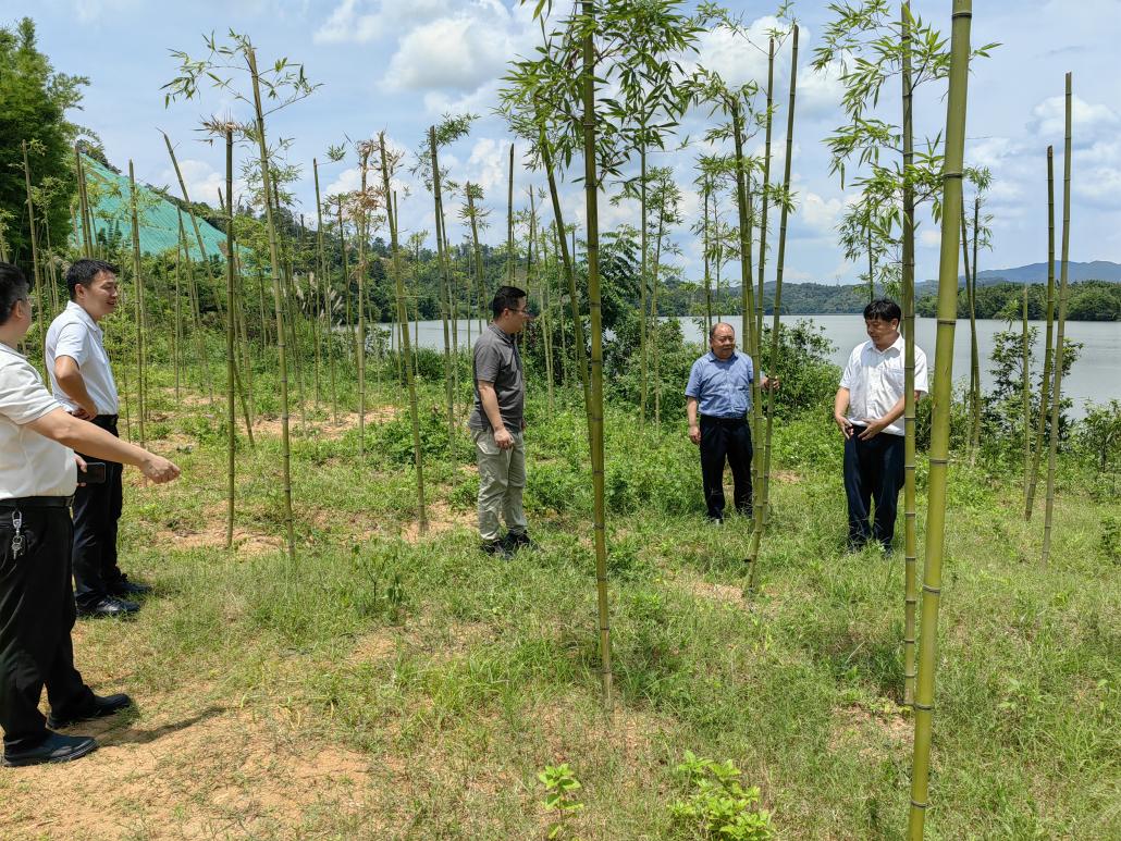 6月10日上午,专家团队一行前往东源县人民政府,与东源县委副书记、省科技厅农业农村科技处副处长林俊超、县林业局以及县科创中心主要负责同志就省科技厅科技项目“东江画廊及康禾国家森林公园景观提升与生态修复技术示范项目”的具体实施进行深入交流讨论。会后,朱根发一行前往仙塘、义合、黄田和柳城镇等东江画廊竹韵景观提升建设实施点展开实地调研和技术指导。