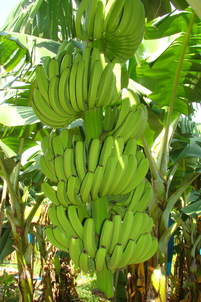 品种优势:品种特异性较强,中高抗香蕉枯萎病4号小种,中抗叶斑病和黑星病。新地连续种植十年不会(或极少)发生枯萎病,轻病地种植发病率低于3%,重病地轮作后配合栽培技术,发病率低于3%。叶片较直立,适宜密植。果肉结实,口感香甜,可溶性固形物含量高达26%,品质优良,产量高,耐寒性比宝岛蕉好。生育期较巴西蕉长约30天,比宝岛蕉短20天。货架期较巴西蕉长2-4天,果皮催熟后鲜黄。