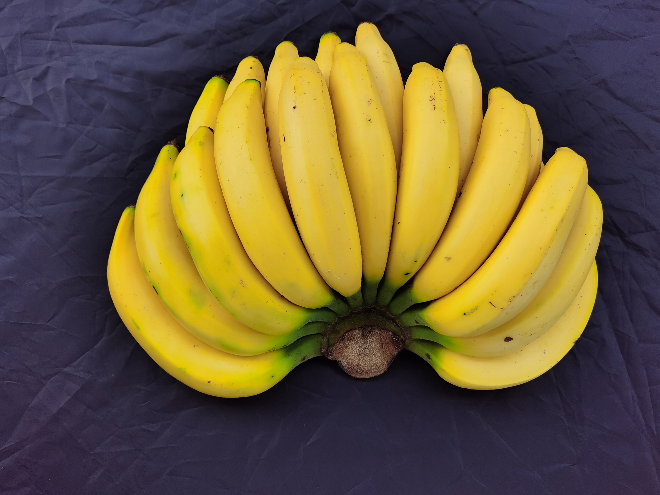 品种优势:佳丽蕉对香蕉枯萎病1号小种和4号小种高抗。果指细长弯曲,催熟后呈鲜黄色,品质优异、果肉结实香甜、口感极佳。可溶性固形物可达26%,品质优,肉质结实,香气浓郁,货架期长。