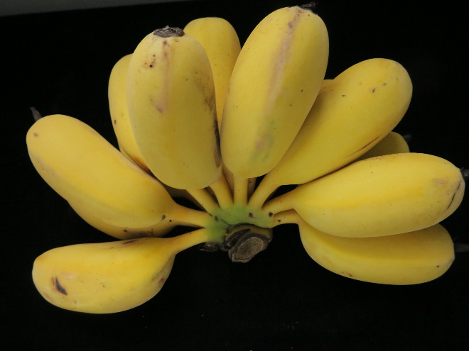 品种优势:粉杂1号高抗香蕉镰刀菌枯萎病(重病区发病率<5%)、抗风(11-12级)、耐涝(可耐浸5昼夜)和耐寒(可耐-2℃);平均单株产量20kg,亩产可达3000kg;果实外观好,耐贮运,货架期4-6天,比一般粉蕉长2-3天;果实可溶性糖含量达21%,风味浓甜微酸,兼具苹果幽香,品质优异。