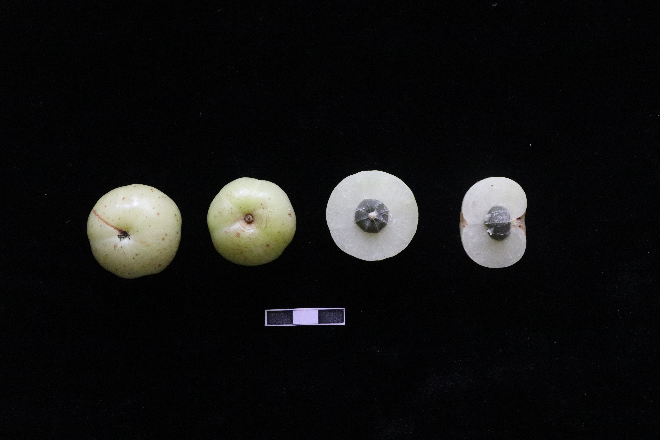 品种优势:果实个大、扁圆形,果皮黄绿色,品质优良,酸涩味轻,回甘明显;可溶性固形物含量10.4%,可食率90%以上,适合鲜食与加工。