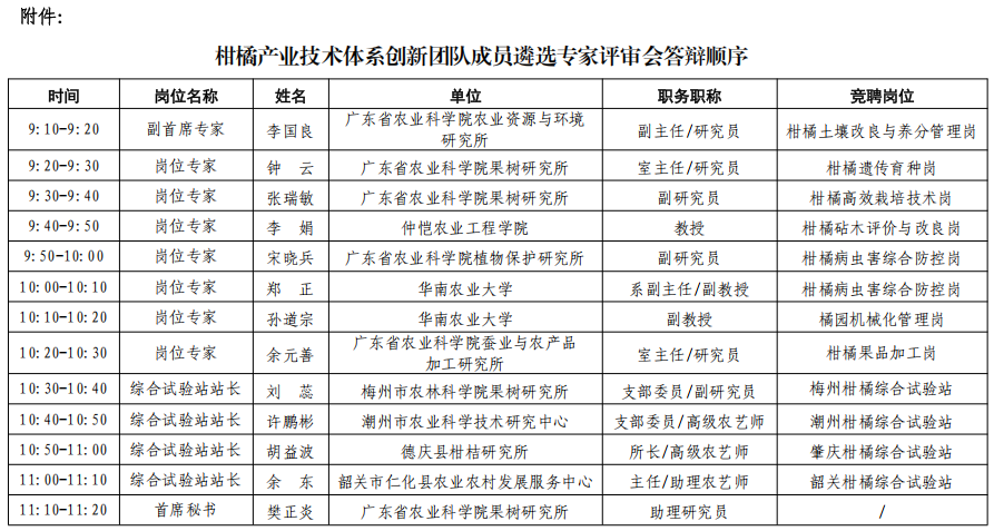 附件:柑橘产业技术体系创新团队成员遴选专家评审会答辩顺序