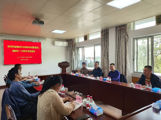 会上,钟小雄代表果树所对梅州市农林科学院一行到访表示欢迎。谢岳昌介绍了梅州市农林科学院的基本情况以及与果树所的科技合作情况。双方围绕科技项目合作、学术交流等方面进行了深入交流和探讨。