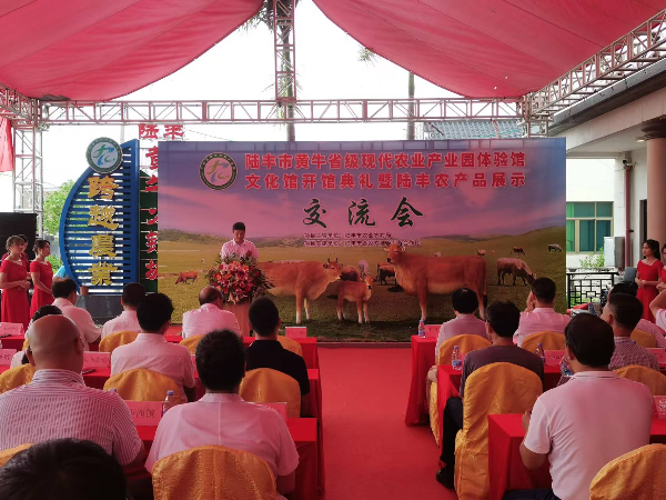 8月26日,动科所党委书记孙建新、草食动物与草业研究室主任李大刚等一行4人赴陆丰市,受邀参加“陆丰市黄牛省级现代农业产业园体验馆、文化馆落成典礼暨陆丰市农产品展示交流会”活动。陆丰市人民政府副市长刘亮、汕尾市关工委主任林义君、陆丰市农业农村局局长杨继炫和陆丰市黄牛省级现代农业产业园各个实施主体企业代表均到场参与此次交流活动。
