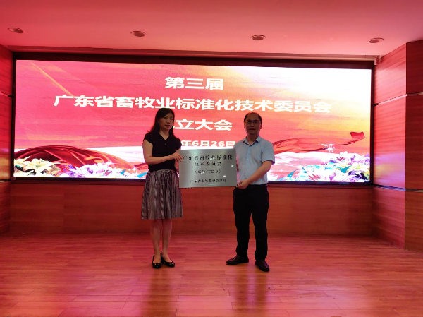 会上,梁雪梅宣读了《广东省市场监督管理局关于批准成立广东省畜牧业标准化技术委员会(第三届)的通告》并向省畜牧业标委会进行授牌。第三届省畜牧业标委会由35名委员组成,其中罗成龙任主任委员,李跃龙、王刚任副主任委员,王丽任秘书长,蔡更元任副秘书长;秘书处承担单位为好色TV 动物科学研究所。