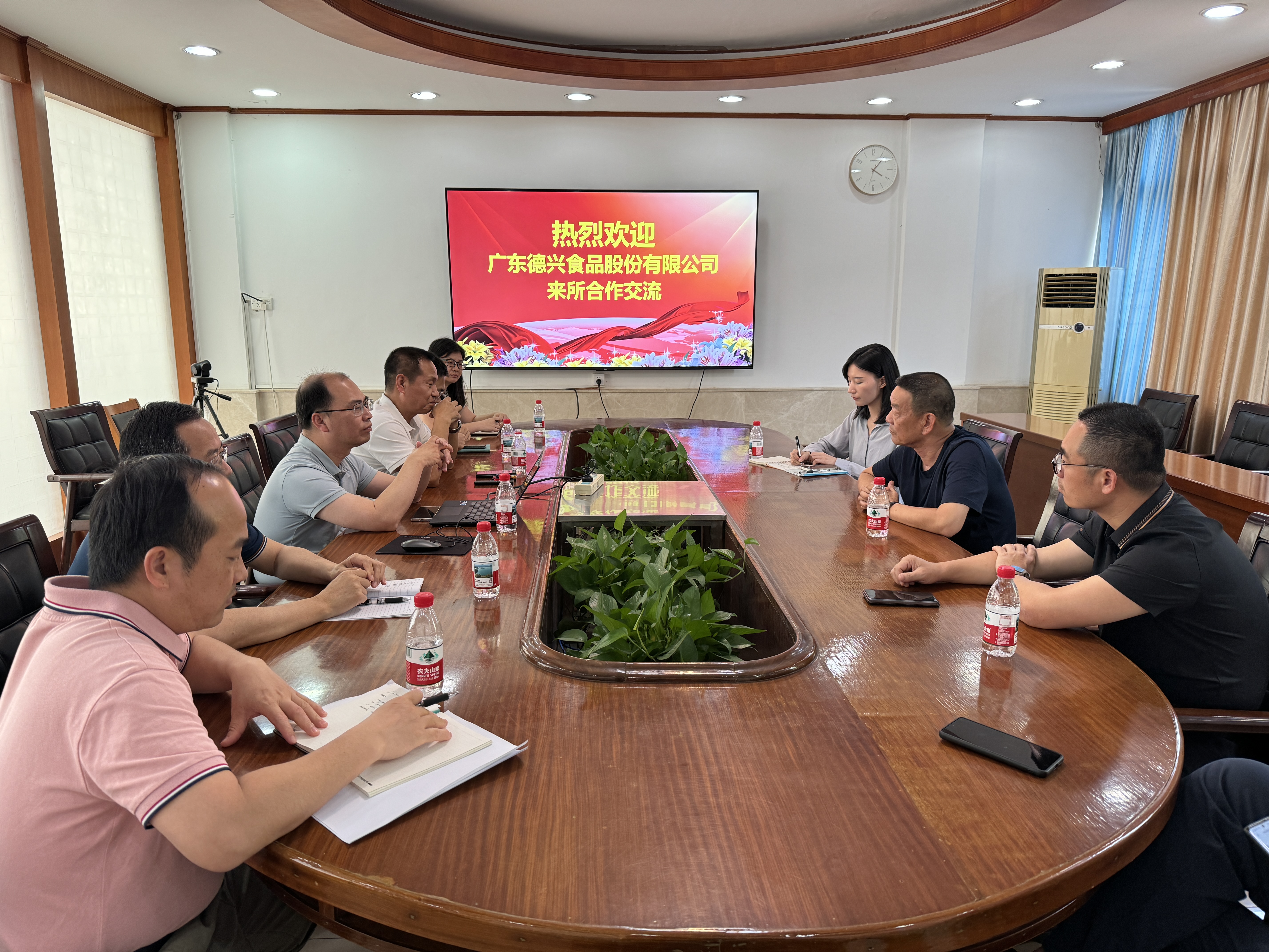 4月29日,广东德兴食品股份有限公司董事长姚辉德一行到动科所开展合作交流。动科所所长罗成龙携相关部门负责人及科技骨干参与交流。
