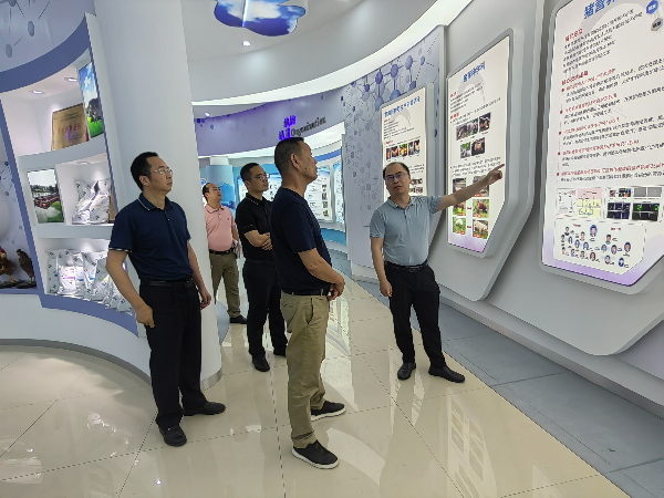 在创新成果展厅,罗成龙详细介绍了动科所的发展历程、科研平台建设、人才队伍建设以及科技成果转化等方面的情况。随后,双方围绕品种选育、营养调控、环境控制和生态养殖等核心技术领域进行了深入探讨。