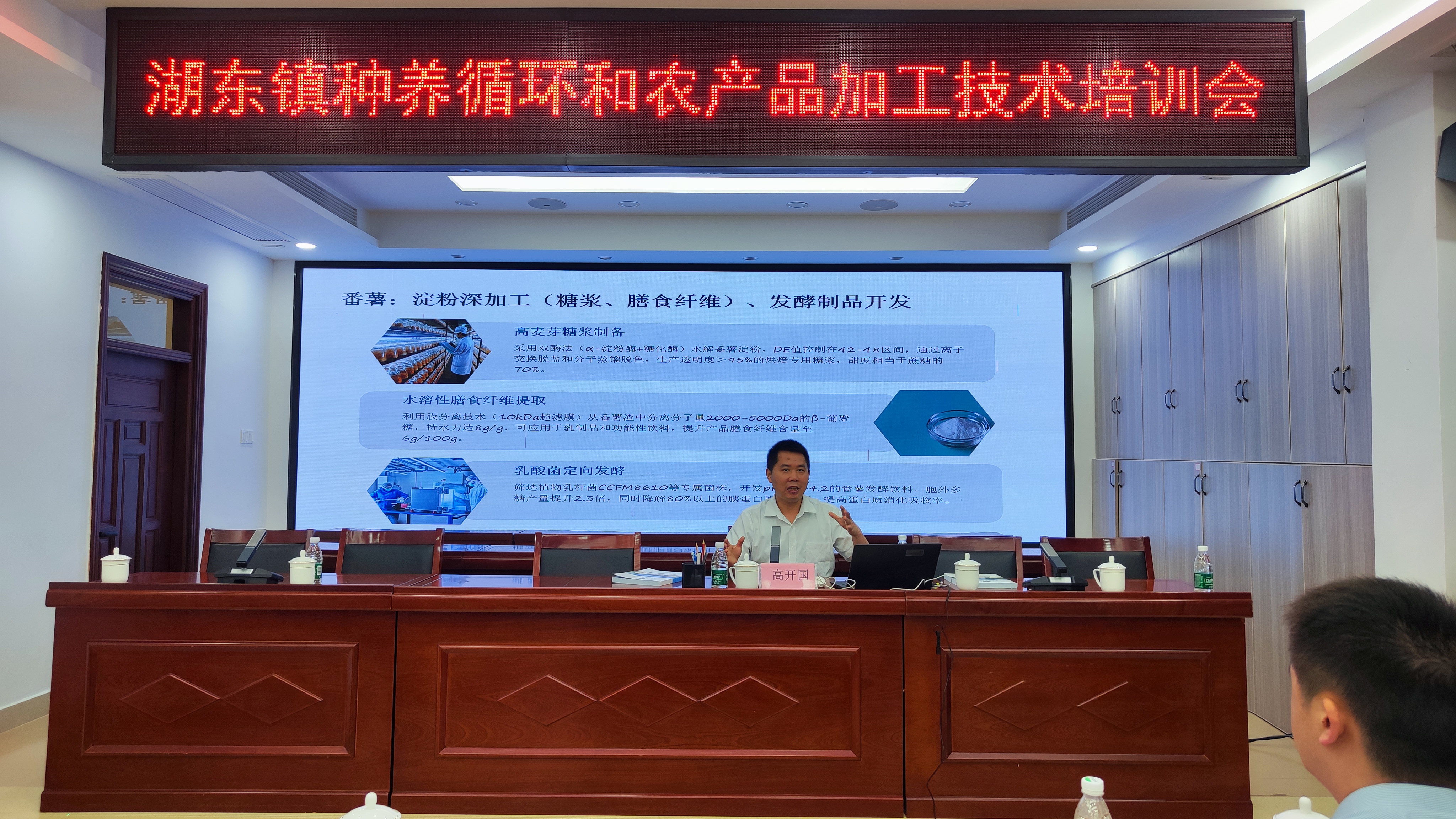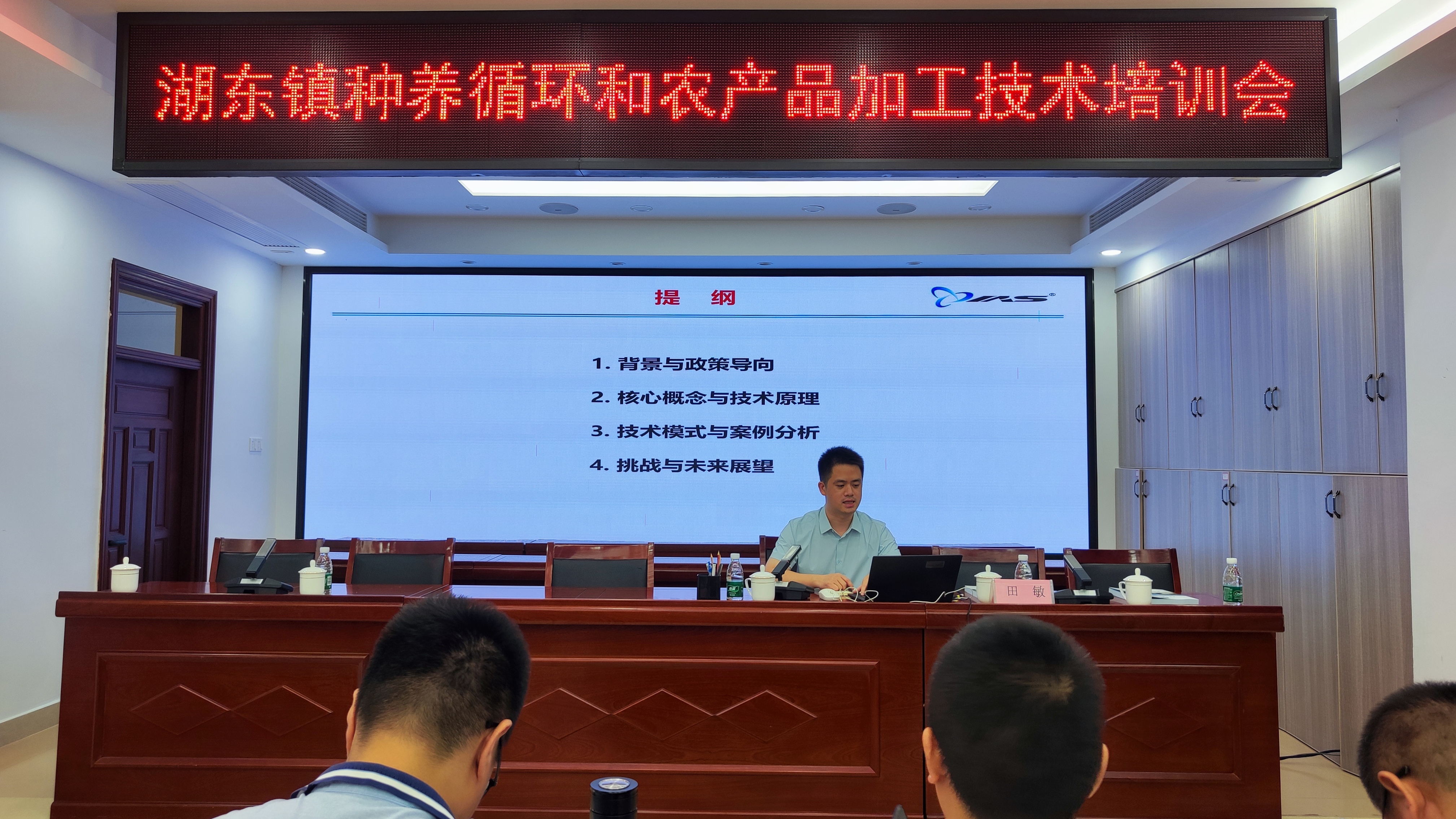 培训会上,田敏博士围绕“绿色种养循环增效技术”作专题报告,针对执行绿色种养循环技术的难点,提出有效解决方案。刘志昌博士围绕“养殖粪污低成本资源化处理技术”作专题报告,讲解畜禽粪污无害化处理的必要性和畜禽养殖场粪污处理思路,助力农户实现生态效益与经营收益双提升。高开国研究员围绕“农产品精深加工与增值技术”作专题报告,并提出,湖东镇应立足种养循环与农产品精深加工,培育龙头企业,形成联农带农机制,推动产业振兴。
